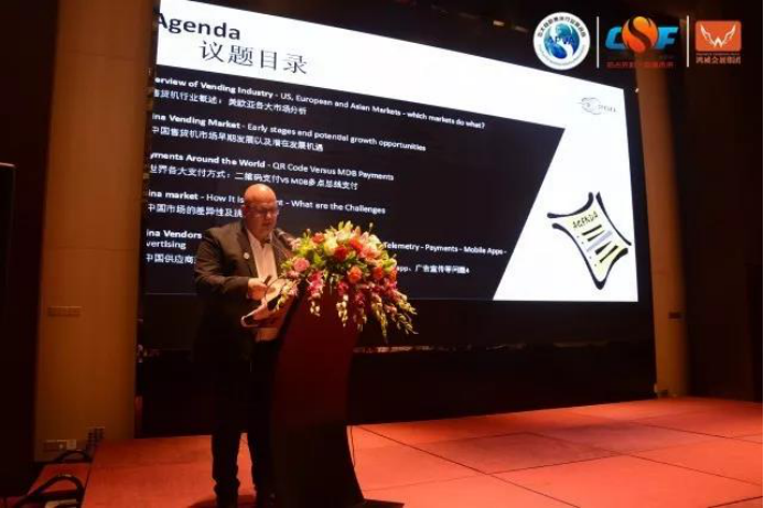 APVA秘書長徐海東先生致辭,向我們介紹了目前自助售貨行業的發展形勢,并對到場的同行朋友們表示感謝,也預祝2018中國(廣州)自助售貨系統與設施博覽交易會成功舉辦。