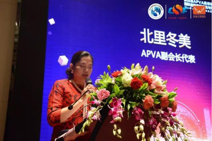 APVA副會長代表北里冬美致辭:分析了目前自助售貨與新零售的新形態現況,并希望在亞太自助售貨行業聯合會于會長的領導下行業更規范,資源更融合,發展更穩健,并預祝2018中國(廣州)國際自助售貨系統與設施博覽交易會圓滿成功。