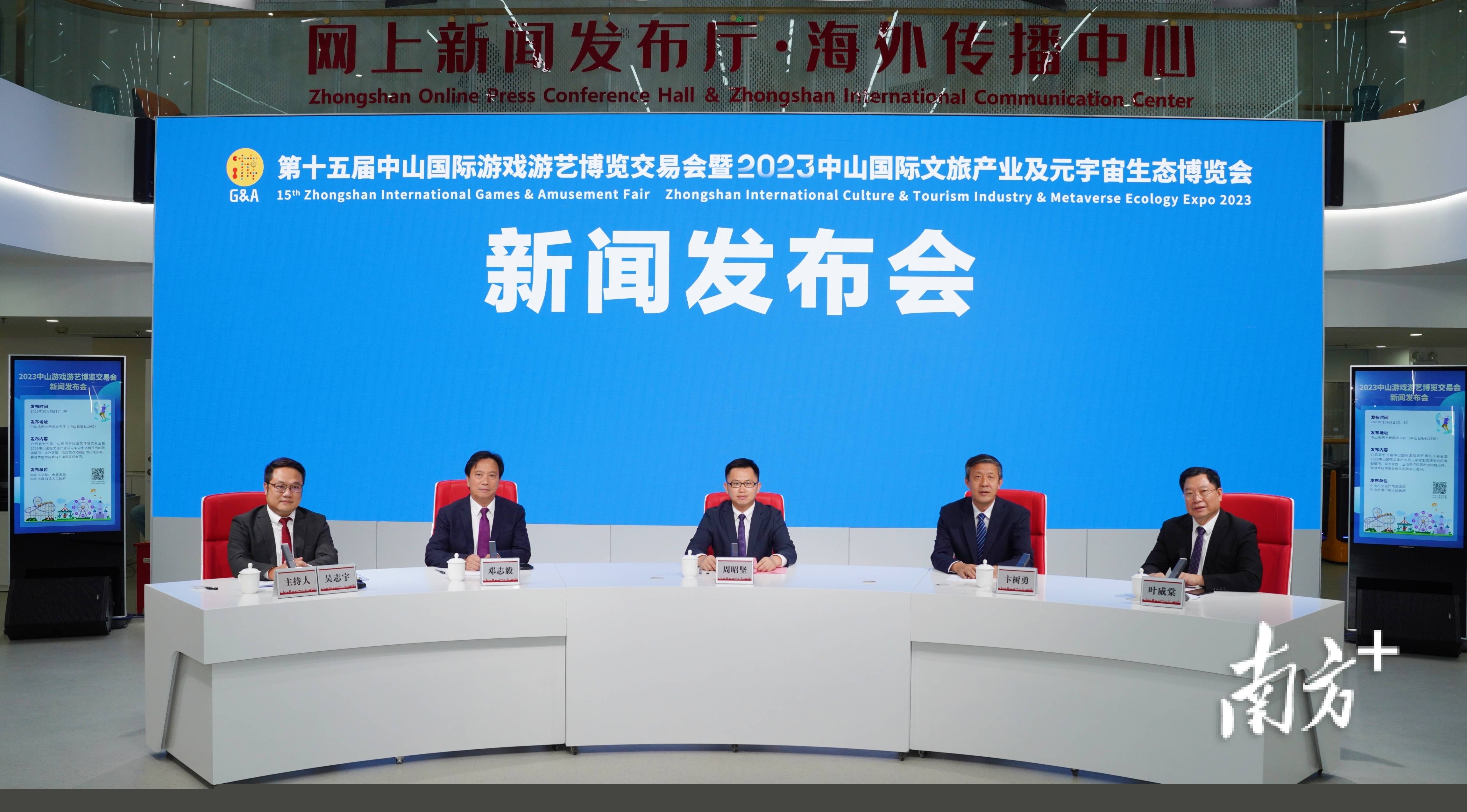 10月8日下午,第十五屆中山國際游戲游藝博覽交易會暨2023中山國際文旅產業及元宇宙生態博覽會(下稱“2023中山游博會”)新聞發布會在中山市網上新聞發布廳召開。